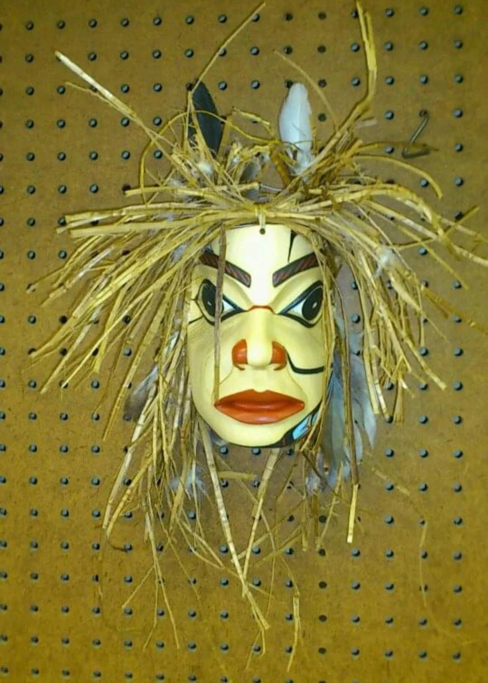 Portrait Mask | Yellow Cedar, Red Cedar Bark | 5" x 6.5" x 4.5"
